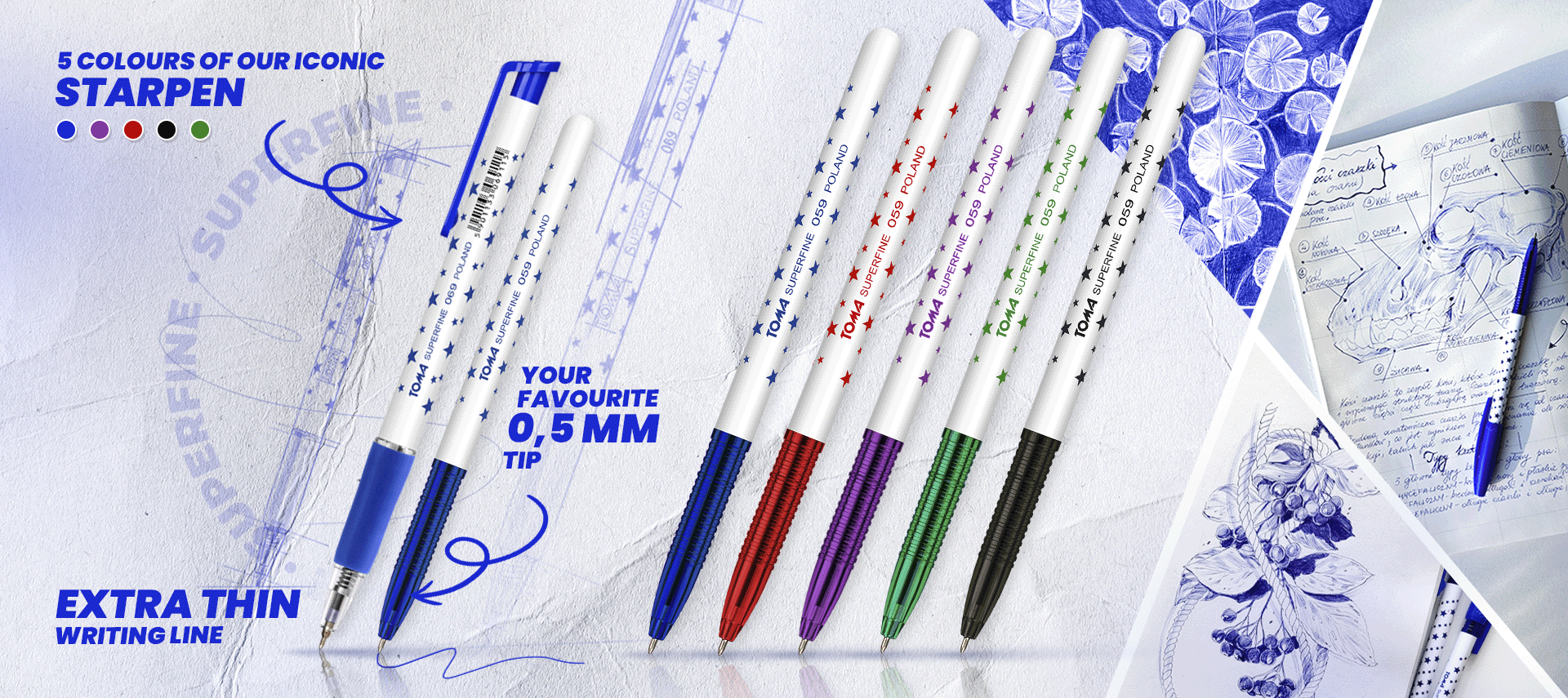 Our Polish company has many years of experience in supplying products that support creativity, communication, self-expression and everyday tasks at school and in the office. Our passion for creating excellent writing instruments is visible in every detail of our products. We are not only a manufacturer of writing instruments - we are your partner in creativity.